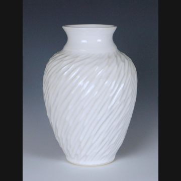 This mug is made with a speckled brown clay that adds a bit of texture & life to the matte white glaze on the top half of this piece. The white blends in to a soft glossy blue/green with a satin matte black finish on the foot & interior. It's a great shape to hold with two fingers on the handle or right around the mug to warm your hands!